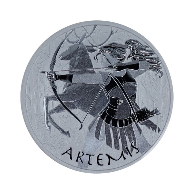 This 5 troy ounce silver coin of the Gods of Olympus – Artemis is the latest release in the Gods of Olympus series. The coin contains 155.52 grams of 99.99% pure silver and has a limited mintage of 450 pieces.